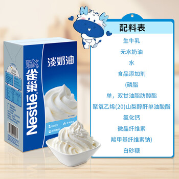 雀巢(Nestle)淡奶油1L 动物性稀奶油 蛋糕裱花面包蛋挞甜品 奶茶奶盖易打发