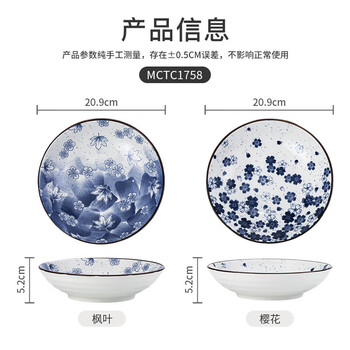 美厨(maxcook)菜盘餐盘陶瓷餐具 8英寸2只装日式深盘碟子 西餐盘饺子盘MCTC1758