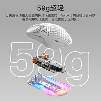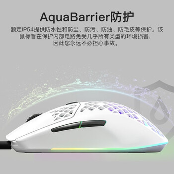 赛睿(SteelSeries)Aerox3 有线游戏鼠标 洞洞鼠镂空电竞鼠标 战队推荐FPS/无畏契约/CS2专用鼠标 轻量化59g 白色