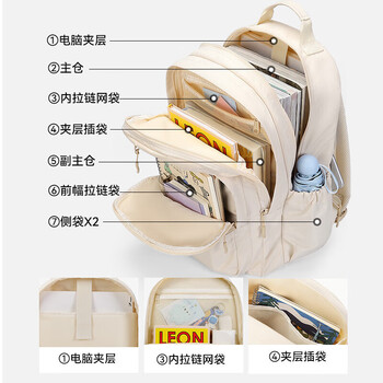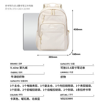 第九城(V.NINE)书包初高中生双肩包男女生背包4-6年级大容量书包14/15英寸电脑包