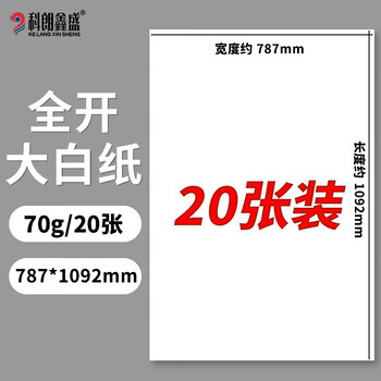 科朗鑫盛全开白色大张学生手工diy手撕绘画包书纸家用贴墙纸培训会议白板纸海报纸大白纸A0全开 70g20张