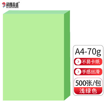 科朗鑫盛 KL-CF125 粉色a4纸a4彩纸红纸a4彩色复印纸打印纸手工折纸500张 浅绿【70g 500张】