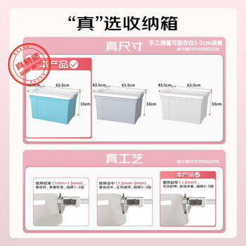 清野の木 衣物收纳箱特大号塑料整理箱70L蓝色 1个装 带轮