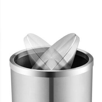 唐年 TONNEY垃圾桶创意圆形不锈钢 外磨砂 立式翻转盖垃圾桶酒店 客厅 走廊 公共区域垃圾桶18L