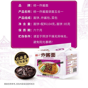 统一炸酱面 老北京炸酱面 袋装 104g*5袋 五连包 干拌面 方便面速食面