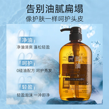 咖思美日本原装进口马油洗发水液600ml熊野油脂无硅控油蓬松男女士去屑