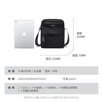 高尔夫(GOLF)单肩包男士休闲斜挎包男手机ipad包防泼水通勤运动挎包送男友礼物