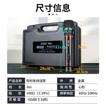 先科(SAST)OK-73有线话筒麦克风 会议演讲专用动圈麦家庭KTV演唱卡拉OK 4米线长 带塑料箱