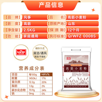 风筝高筋小麦粉 面条包子油条中式面点白面粉5斤