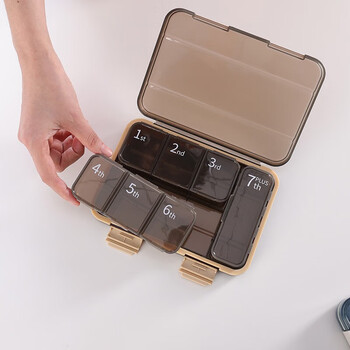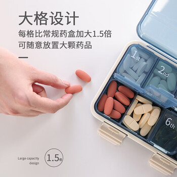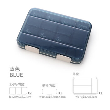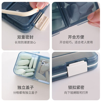 欣沁药盒密封收纳盒一周7天大容量便携分装盒收纳盒7格可拆卸 蓝色