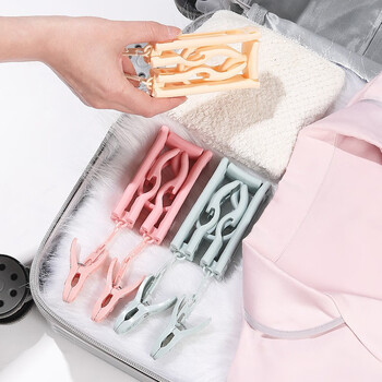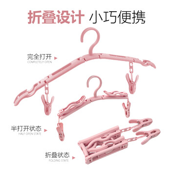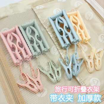 欣沁旅行折叠衣架酒店出行多用小巧晾晒衣架便携带袜子夹子蓝色1个装