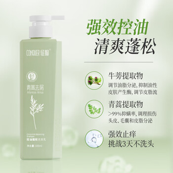 征服控油止痒洗发水335ml青蒿去屑养发除螨洗发露去油蓬松洗头膏乳液