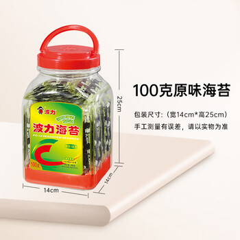 波力海苔原味100g约645片儿童零食高蛋白即食调味紫菜寿司包饭纯海苔