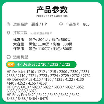 才进适用惠普805墨盒彩色hp deskjet 1210 1212 2330 2332 2720 2729 2722打印机可加墨2700 2723 27218墨粉盒XL
