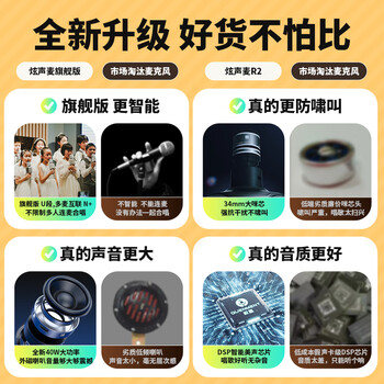 权盟k歌麦克风话筒音响一体式机家庭ktv娱乐自带声卡拉OK户外无线蓝牙直播唱歌扩音录音设备 生日礼物