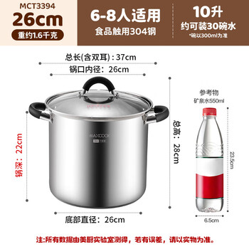 美厨(maxcook)汤锅304不锈钢 复底高汤锅26cm 燃气炉电磁炉通用MCT3394
