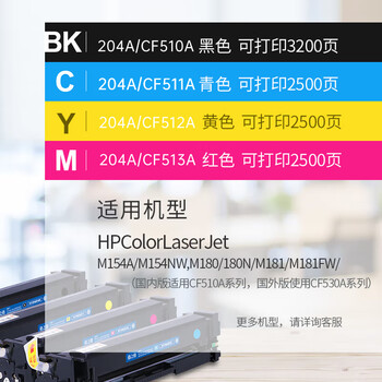 格之格204a硒鼓适用惠普m180n硒鼓hp m154a硒鼓 m181fw M154nw打印机粉盒 cf510a大容量带芯片 10700页 四色套装