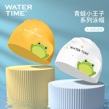 WATERTIME/水川 儿童泳帽男童女童防水硅胶不勒头长发护耳游泳帽青蛙王子黄