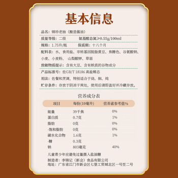 李锦记 锦珍系列 锦珍老抽1.75L 自然红润 草菇添味 专业红烧 酱油