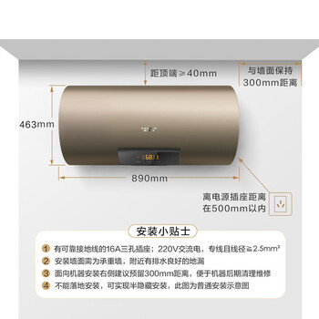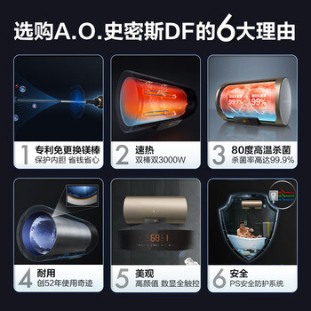 史密斯(A.O.SMITH)80升电热水器 专利免更换镁棒 晶彩外观 金圭内胆8年包换 双3kW速热E80MDF 一级能效*