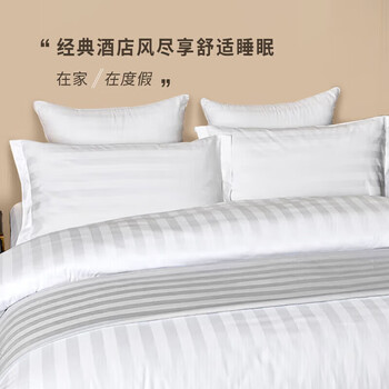 然牌 酒店白色床上三件套 100%纯棉缎条纹款酒店套件 0.9-1.2米单人床