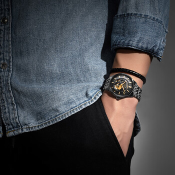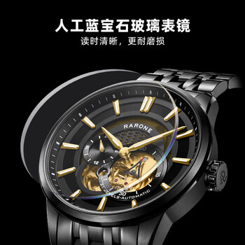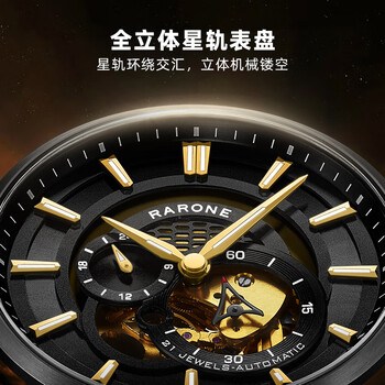 雷诺(RARONE)星际系列潮流镂空全自动男士手表机械表钢带腕表 生日礼物送男友