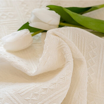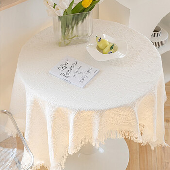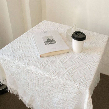 艾薇桌布白色蕾丝餐桌布棉织茶几台布圆桌布正方形盖布90*90米白T格