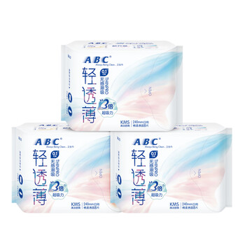 ABC KMS棉柔0.1cm轻透薄日用卫生巾240mm*8片*3包