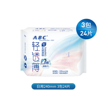 ABCKMS轻透薄健康配方超薄无感日用卫生巾套装京东自营240mm*24片
