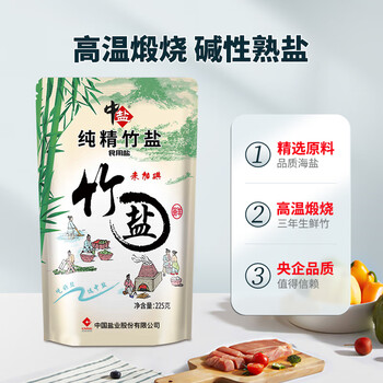 中盐 纯精竹盐225g【未加碘 食用海盐】无碘海盐 炒菜调味 中盐出品