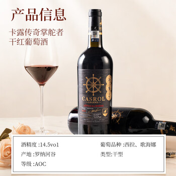 卡露传奇法国进口红酒14.5度AOC西拉歌海娜干红葡萄酒750ml*6瓶整箱礼盒装