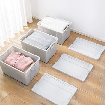 清野の木 衣物收纳箱特大号塑料整理箱36L灰色 1个装 带轮