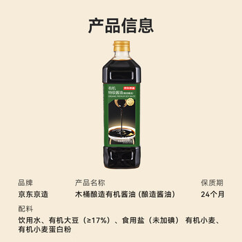 京东京造鲜来多0添加特级有机酱油1L 轻盐 生抽 400天匠心酿造有机认证