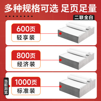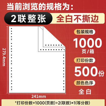 天章 (TANGO)【缺页十倍赔】天章风二联整张 针式打印纸 不撕边电脑打印纸 出入库送货清单 1000页 241-2(全白)