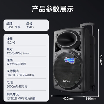 先科大功率广场舞音响户外大音量蓝牙移动音箱拉杆音响带无线话筒套装户外k歌专业设备A90S