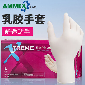爱马斯(AMMEX)一次性手套乳胶100只大码加厚实验室防护清洁原装进口橡胶手套