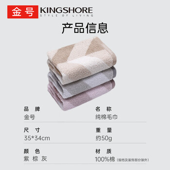 金号方巾3条 A类纯棉小毛巾吸水家用宿舍洗脸擦手巾 紫棕灰