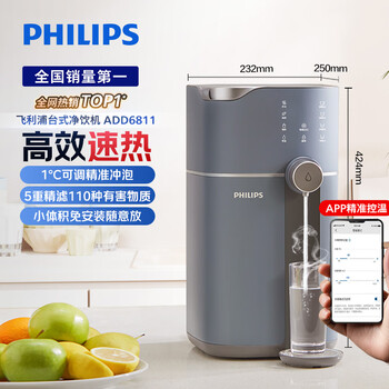 飞利浦(PHILIPS)加热净水器水魔方家用即热饮水机 APP智联 台式免安装净饮机ADD6811