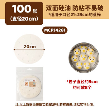 美厨(maxcook)蒸笼纸包子垫纸蒸包子纸蒸笼屉纸一次性100张 直径20cm MCPJ4261
