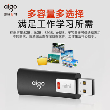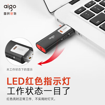 爱国者(aigo)8GB USB2.0 U盘 L8202写保护 黑色 防病毒入侵 防误删