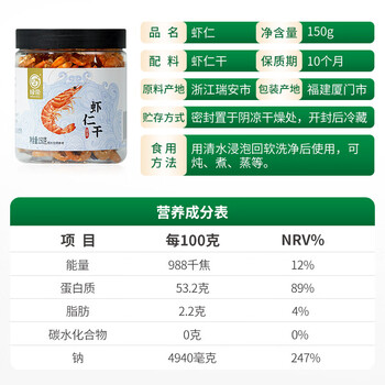 绿帝(GREEN KING)金钩海米 淡干虾干 虾皮 虾仁干150g 紫菜虾仁汤食材