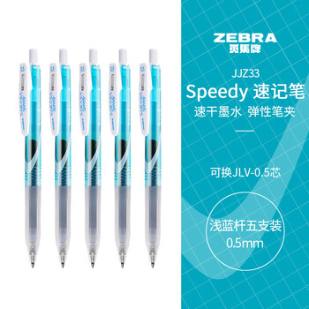 斑马牌(ZEBRA)中性墨水中性笔 Speedy速记学霸笔 0.5mm大容量手账笔 JJZ33 蓝杆黑色 5支装