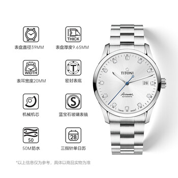 梅花(Titoni)瑞士手表 男士机械表 空中霸王系列 钢带进口腕表83743-S-581礼物