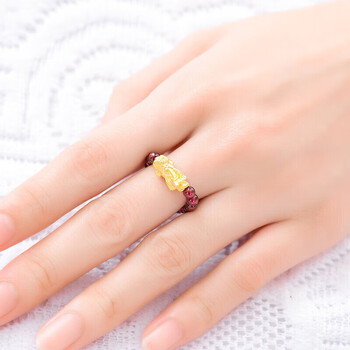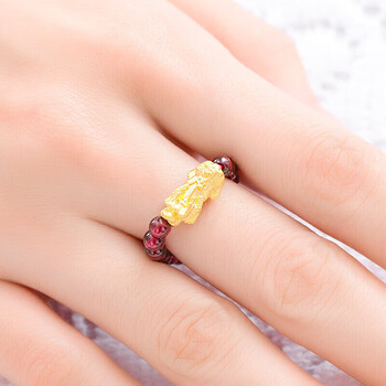 蒂蔻(Tico)招财貔貅黄金戒指女士款3D硬金石榴石指环送女朋友生日礼物