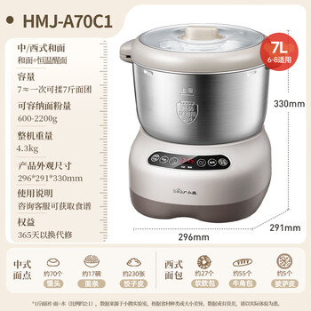 小熊(Bear)和面机 全自动家用商用揉面机 大容量活面机 面粉搅拌打面机 厨师机 HMJ-A70C1 7L