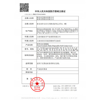 | 禁忌症 | 1.患有各种眼部疾患:如眼部急性或慢性炎症、青光眼、角膜知觉异常、角膜上皮缺损、角膜内皮细胞减少、干眼症等,经眼科医生判断不能配戴。 2.患有可能影响眼部的全身性疾病,经眼科医生判断不能配戴, 3.有接触镜过敏史或接触镜护理产品过敏史。 |