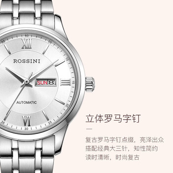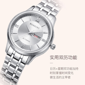 罗西尼(ROSSINI)手表女款 女士手表生日礼物日历机械表白盘钢带515702