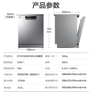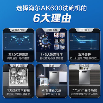 海尔(Haier)洗碗机嵌入式独立式13套大容量AK600 双微蒸汽除菌 智能开门速干 EYW13028CSDU1消毒型