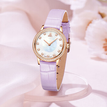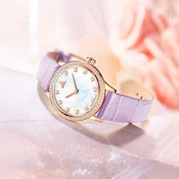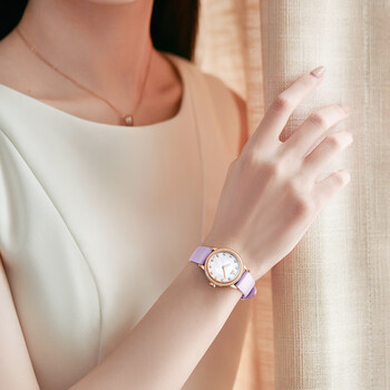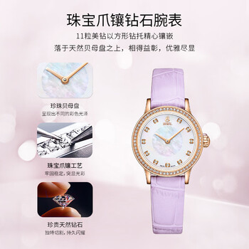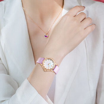 依波路(ERNEST BOREL)瑞士手表女 生日礼物 星钻系列罗兰紫皮带镶钻玫瑰间金石英女表