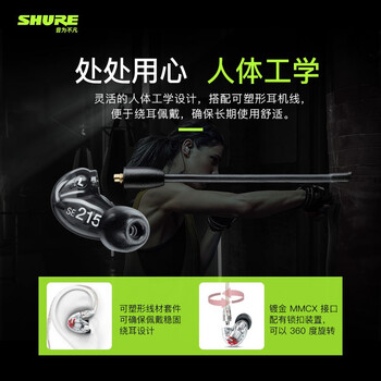 SHURE舒尔Aonic215 UNI动圈有线耳机 入耳式线控通话 强劲重低音 运动 HIFI 手机耳机 黑色